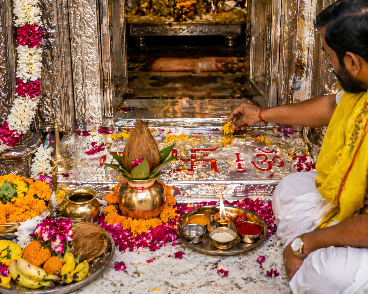 Thousands of pilgrims visit Banke Bihari Temple Vrindavan to perform this powerful ritual because the temple is one of the holiest places dedicated to Lord Krishna. The divine atmosphere of Vrindavan adds even more spiritual value to the puja.